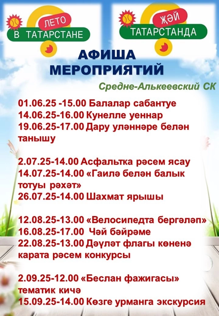 АФИША МЕРОПРИЯТИЙ Среднеалькеевского СК