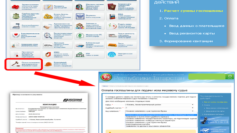 Сервис функционирует на Портале государственных и муниципальных услуг Республики Татарстан с декабря 2016 года, позволяет быстро и без комиссии оплачивать государственную пошлину.
