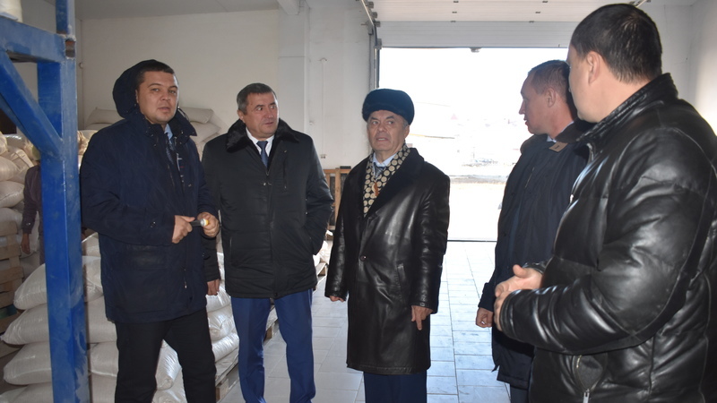 Далее Экзам Губайдуллин посетил ряд производственных объектов Алькеевского района. Он побывал на производственной базе ООО "Хузангаевское": посетил цех по отжиму растительного масла, крупяной цех, маслосыр завод. Далее Председатель Ассоциации «Совет муниципальных образований Республики Татарстан» посетил производственную базу братьев Шайхутдиновых в Нижнем Алькеево.
