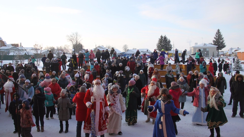 После награждений Деды Морозы и Снегурочки со всеми собравшимися устроили флеш-моб, танцы под веселую музыку. А на сцене выступали работники районного дома культуры.