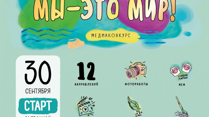 30 сентября 2019 года стартует заявочная кампания Медиаконкурса «Мы – это мир!». Проект реализуется уже с 2015 года при поддержке Региональной общественной организации «Академия творческой молодежи Республики Татарстан». За все время существования проекта получено и обработано более 500 творческих работ в различных номинациях. Ежегодно проект набирает новые обороты, появляются новые темы, номинации, призы и, конечно, новые люди и бесконечный простор для творчества.