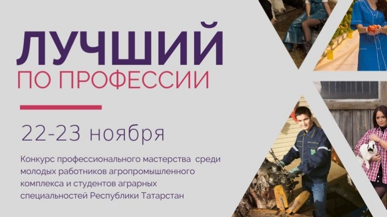 С 22 по 23 ноября в рамках реализации подпрограммы «Сельская молодежь Республики Татарстан на 2014-2020 годы» пройдет конкурс профессионального мастерства «Лучший по профессии» среди молодых работников агропромышленного комплекса Республики Татарстан. Организаторами конкурса выступают региональная общественная организация «Аграрное молодежное объединение Республики Татарстан», Министерство сельского хозяйства и продовольствия Республики Татарстан и Министерство по делам молодёжи Республики Татарстан.