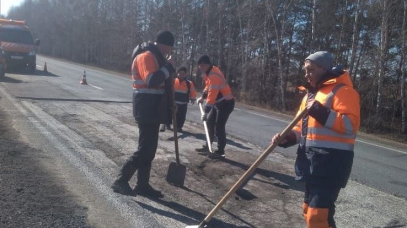 Дорожники занимаются ямочным ремонтом на участке федеральной трассы от села Ахметьево до окончания территории Юхмачей.