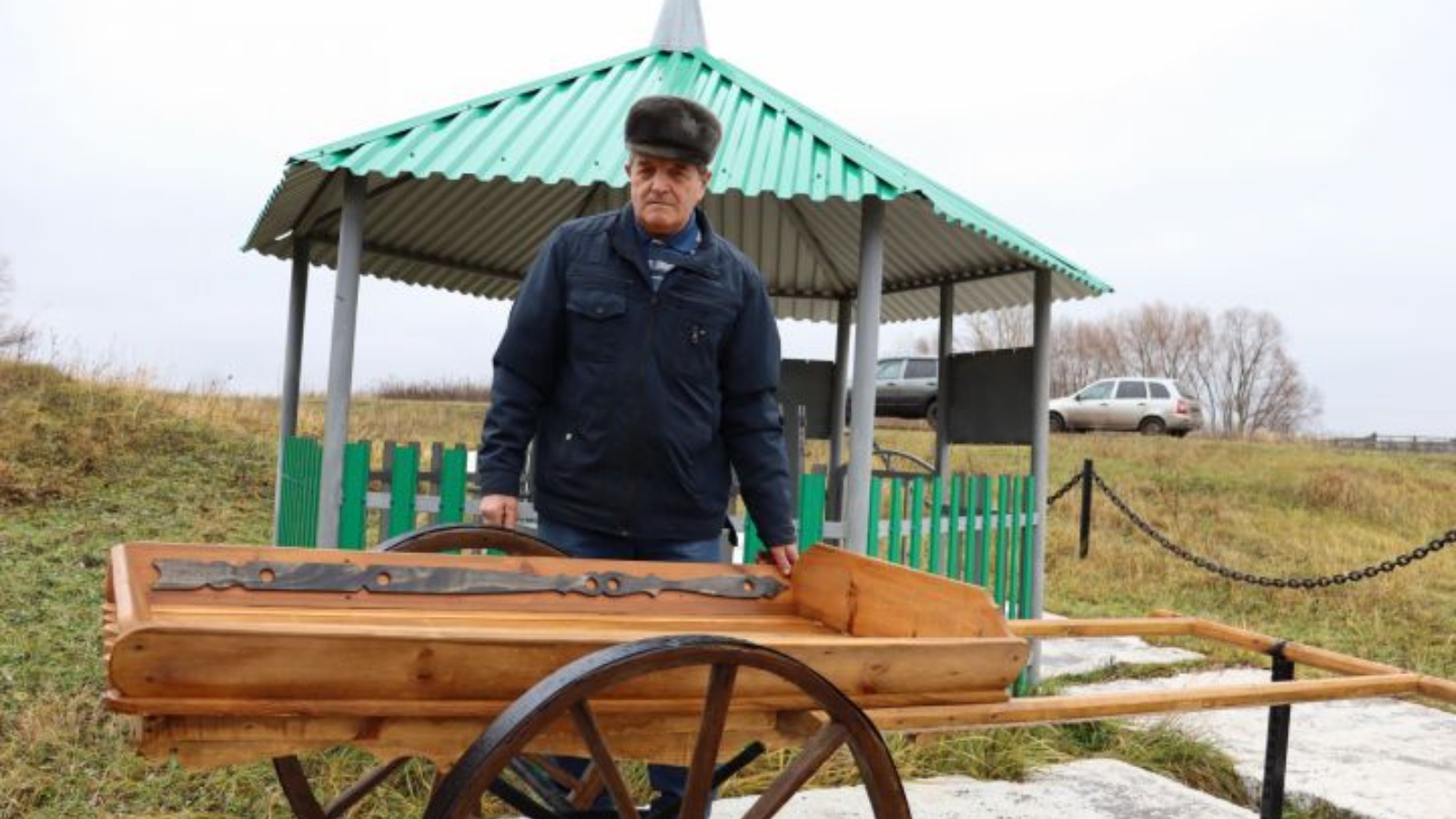 Нынче установили около родника двухколесную тележку – уже канувший в историю обязательный атрибут каждого сельского подворья.
