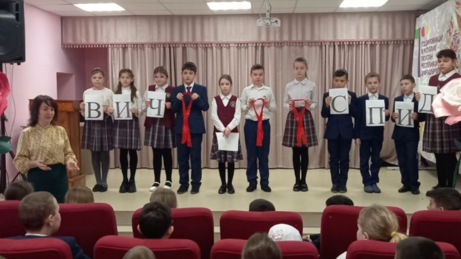 1 декабря отряд «Дозор» 5а класса, являющийся участником республиканского антинаркотического проекта «Sms-дети», провел для 5-7 классов классный час на тему «О беде под названием «СПИД»