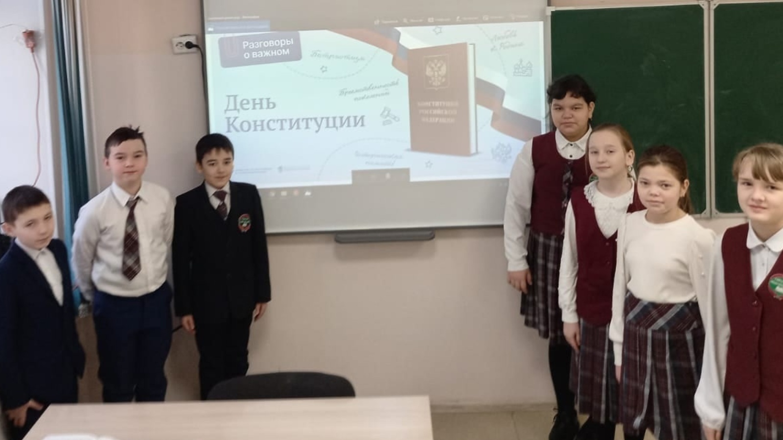 Сегодня тема "Разговоров о важном" была посвящена очень важному государственному празднику, который отмечается сегодня, 12 декабря - День Конституции Российской Федерации. Цель занятия: обеспечить формирование у обучающихся представлений