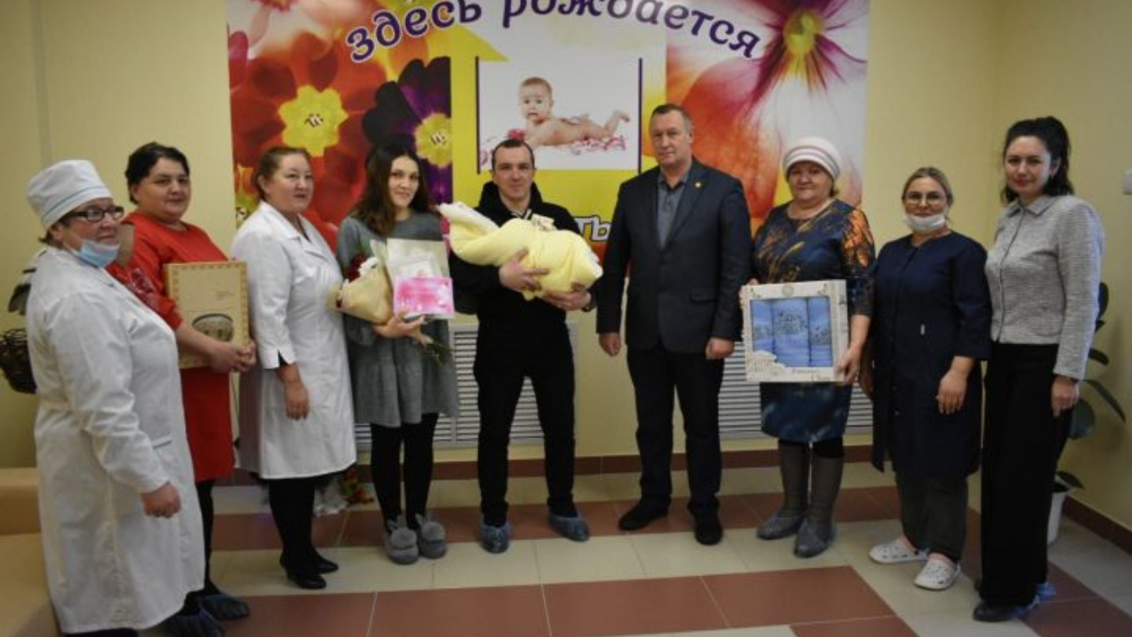 На церемонии выписки счастливой мамы присутствовал и глава района Александр Никошин. Он поздравил семью Габдулхаевых с пополнением, пожелал им благополучия и здоровья.