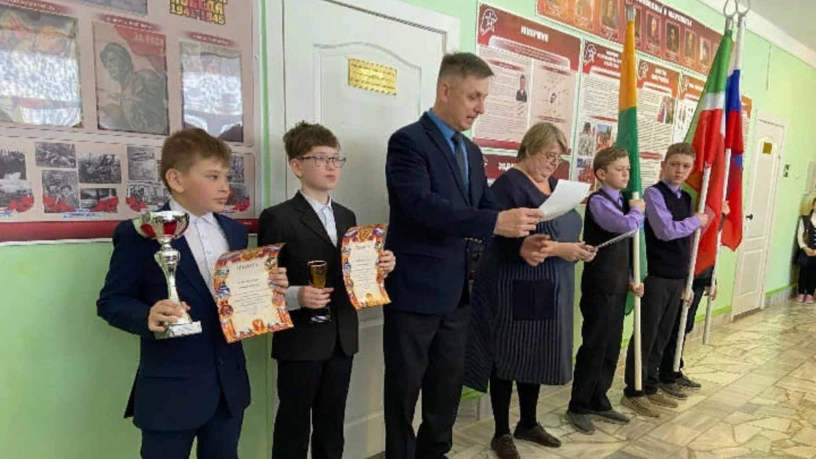 Последняя зимняя неделя в МБОУ "Юхмачинская СОШ", как и во всех образовательных учреждениях нашей необъятной страны началась с торжественной линейки с выносом Государственных флагов РФ, РТ и Алькеевского муниципального района. Также был подведён итог соревнования на Первенство школы по футболу в валенках, в поддержку участников СВО, и были награждены учащиеся, которые достигли хороших результатов на муниципальных, республиканских и Всероссийских конкурсах.
