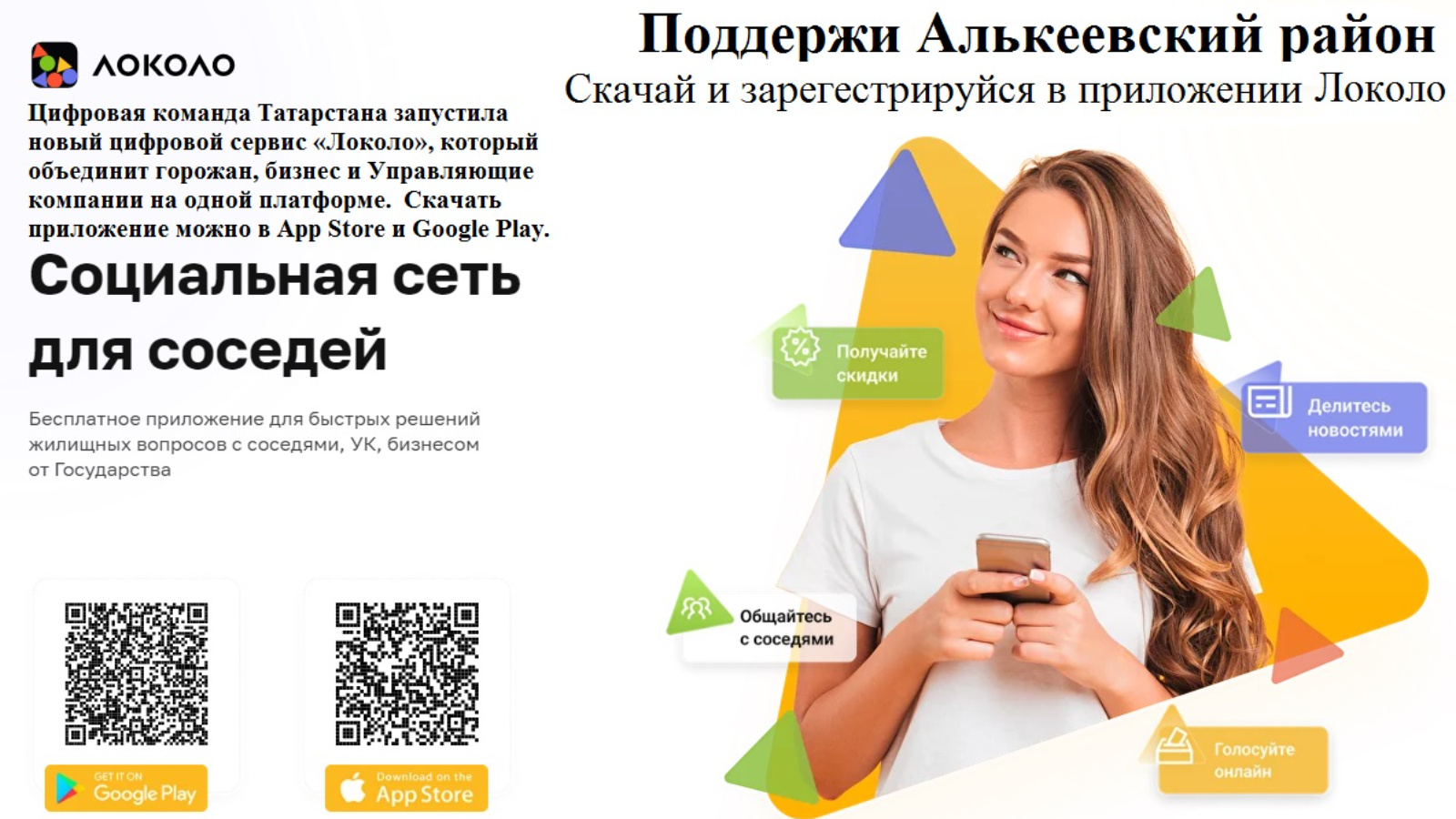 Цифровая команда Татарстана запустила новый цифровой сервис «Локоло», который объединит жителей многоквартирных домов Алькеевского района, бизнес и Управляющие компании на одной платформе. Скачать приложение можно в App Store и Google Play.