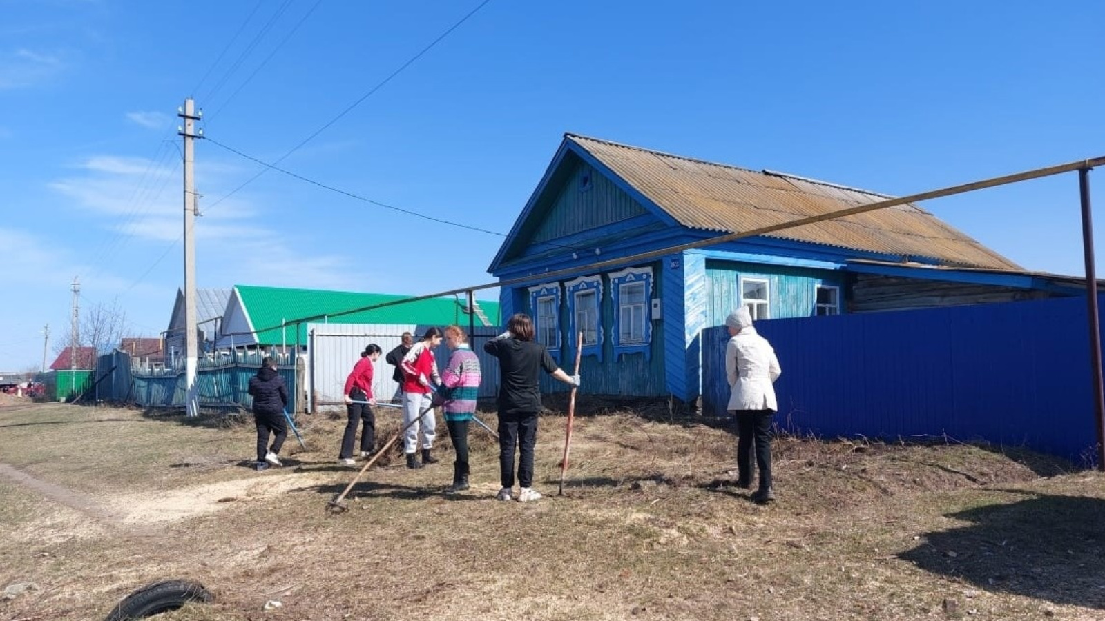 Доброе дело. Очистка территории. Ученики 8 и 10 классов МБОУ "Борискинская СОШ" убрали территорию около дома Амукова Константина, который ушёл добровольцем на СВО в августе 2022 г