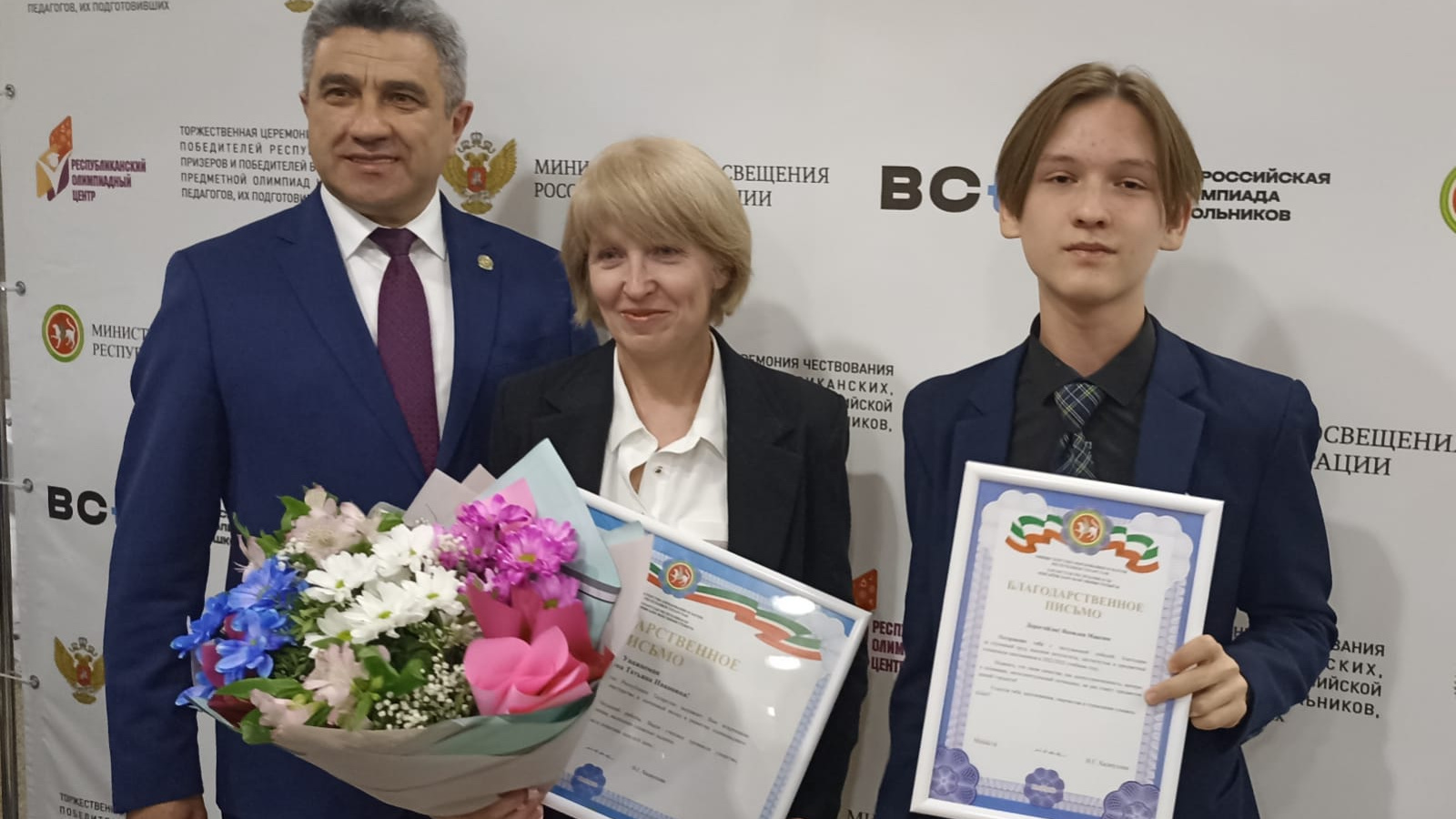 Сегодня в г.Казани в Пирамиде состоялось торжественное чествование победителей школьных олимпиад. Благодарственным письмом министра образования и науки РТ были награждены ученик 8 класса Базарно-Матакской СОШ Яковлев Максим и его учитель Елена Геннадьевна, за победу на олимпиаде Путь к Олимпу по английскому языку.