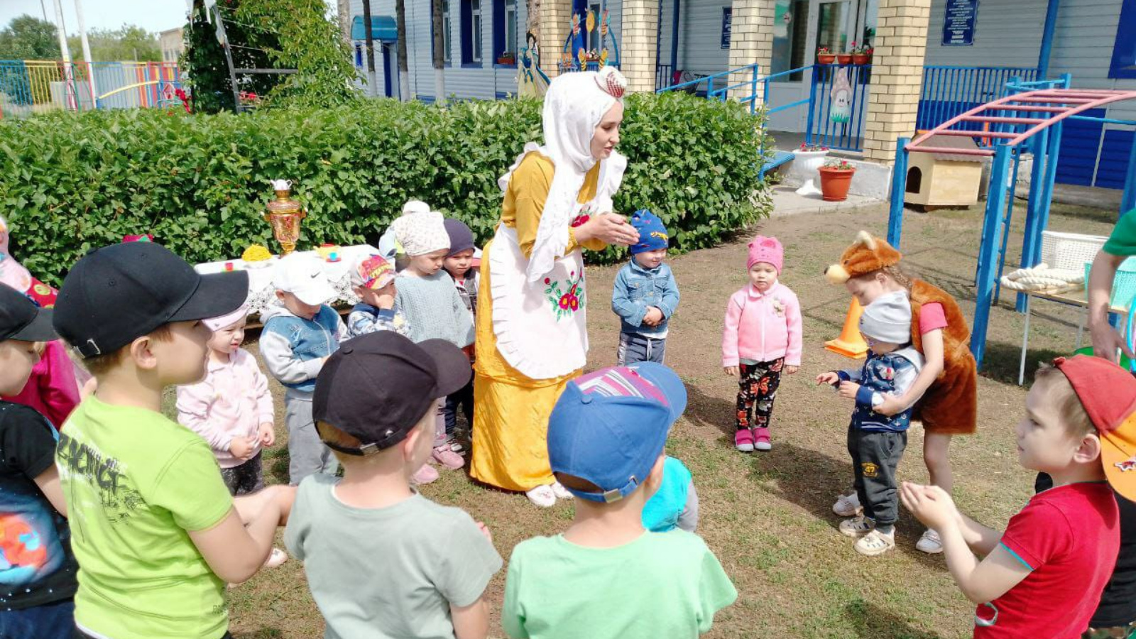 Сегодня в детском саду "Радуга" с Базарные Матаки прошёл самый весёлый, самый любимый детский праздник Сабантуй , праздник плуга! Гостями на празднике были Мишка, Бабушка и Шурале. Дети продемонстрировали гостям праздника свою силу, удаль, ловкость, смекалку и выносливость. Мишку дети порадовали играми " Медведь и пчелы", Кто быстрее соберёт мёд". Бабушке рассказали всё, что знают про Сабантуй. А Шурале развеселили танцами и эстафетами " Кто быстрее донесёт яйцо", " Кто быстрее перенесет воду", а также забавной игрой " Юрта". Вот так весело и зажигательно, дружно и интересно, с пользой для здоровья все вместе провели Сабантуй в детском саду " Радуга"!