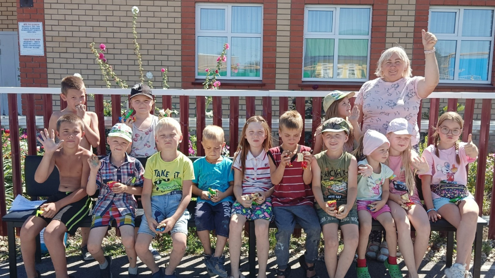 Детишек собирает!