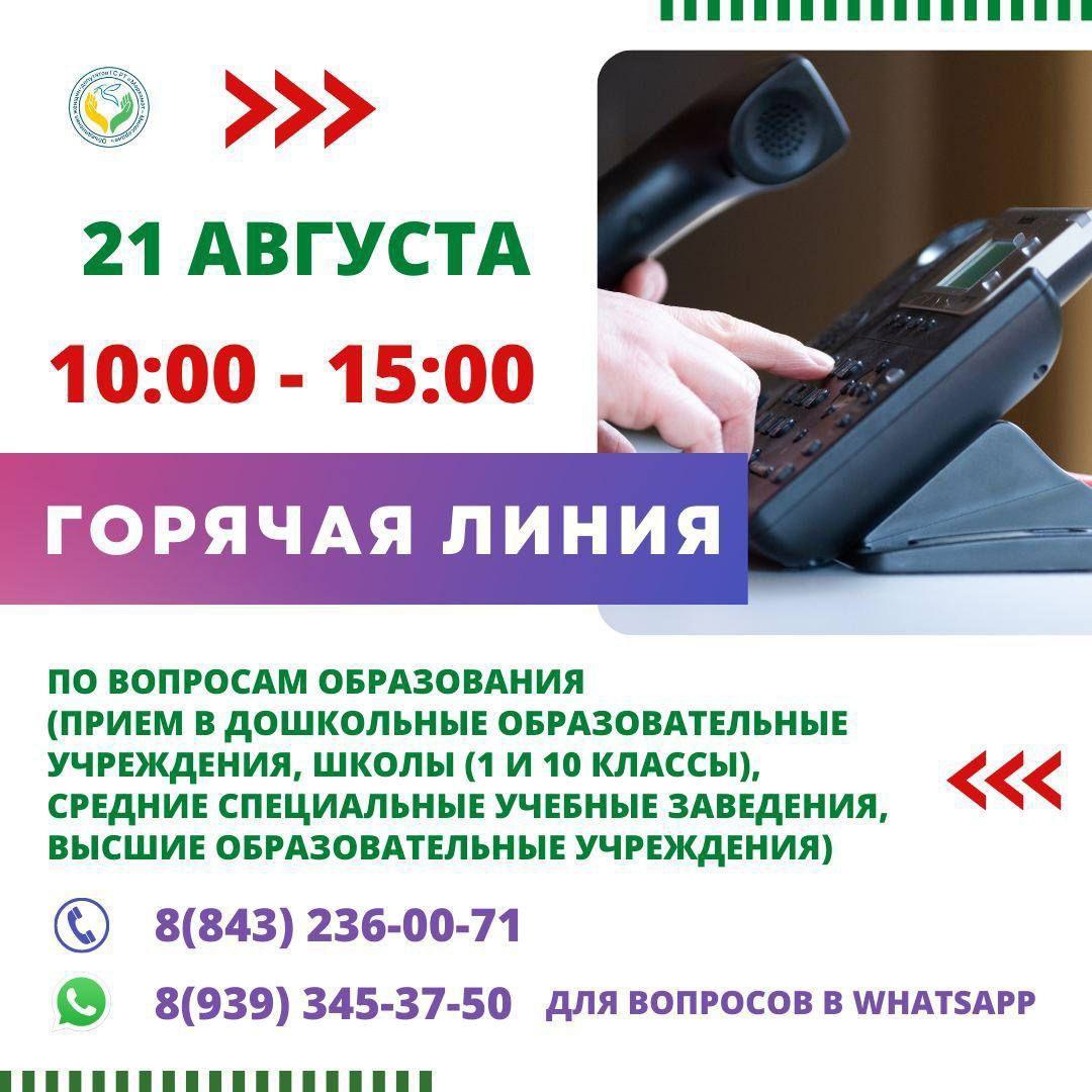 Звонки на телефон «горячей линии» будут приниматься 21 августа с 10 до 15 часов.