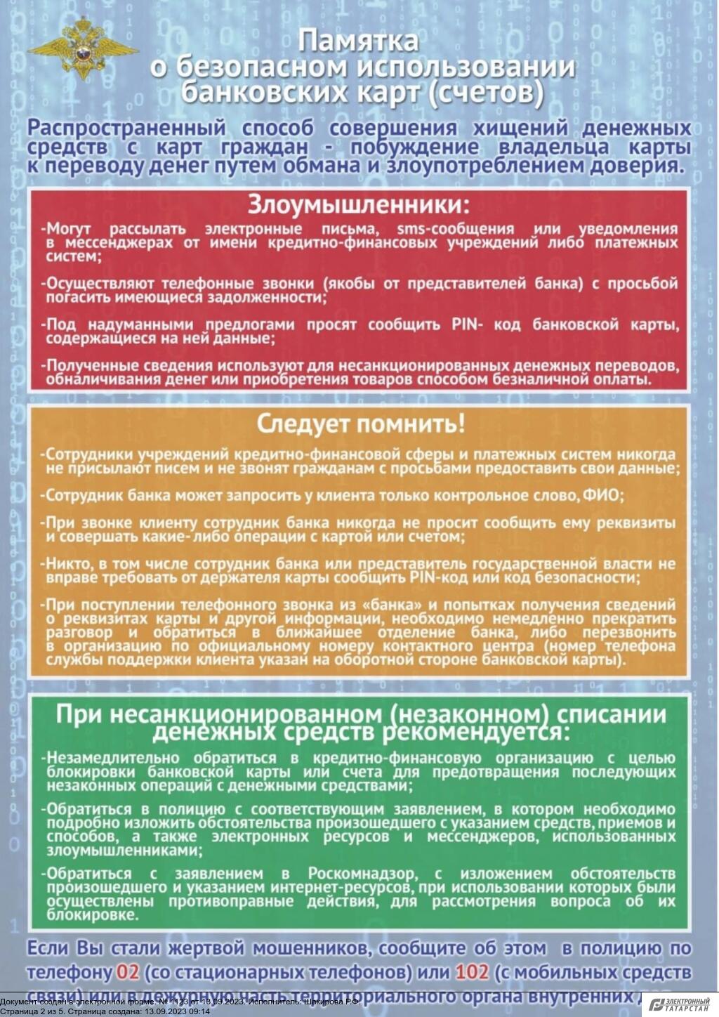 В рамках профилактики хищений денежных средств граджан, совершаемых дистанционно, направляем вам памятки о которых должен знать каждый.