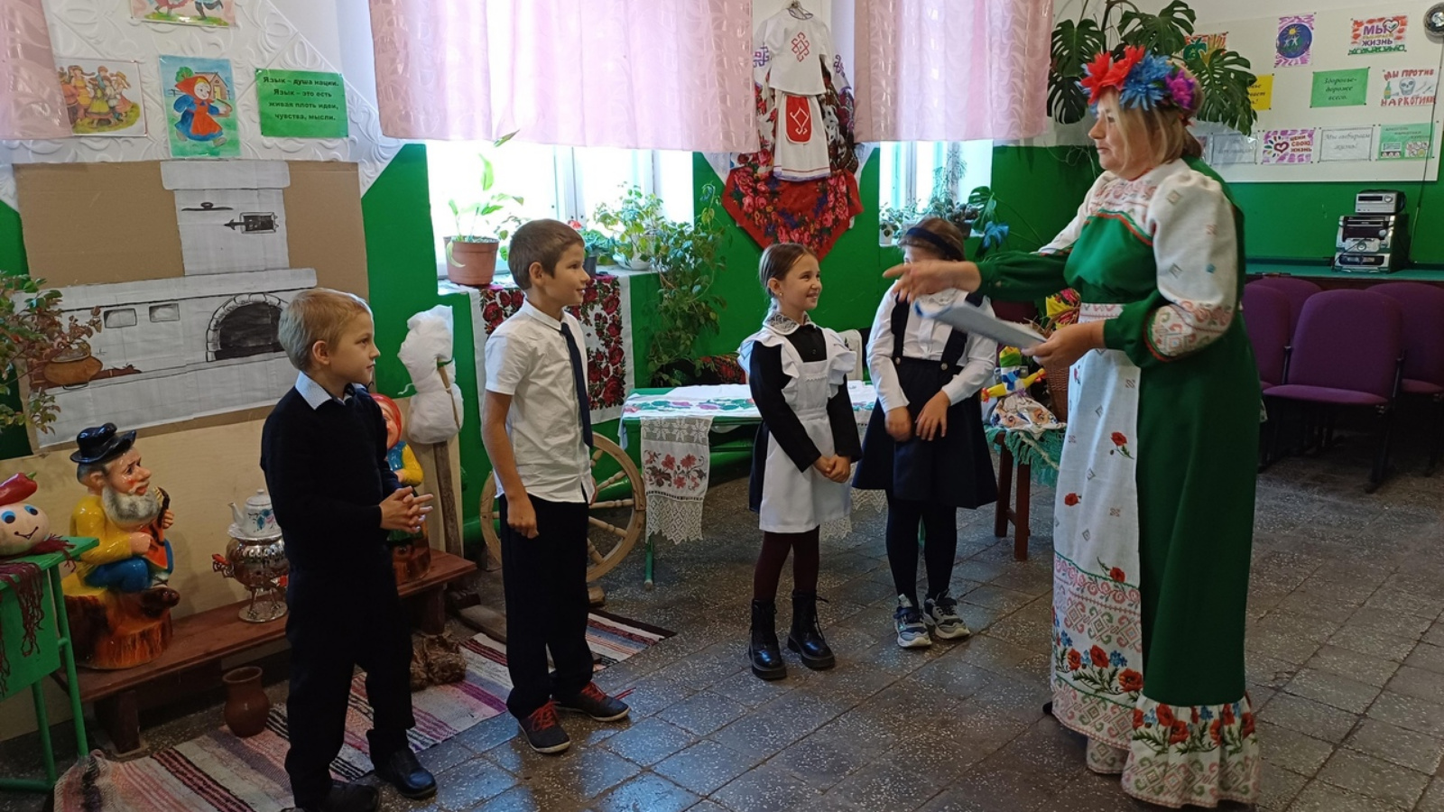 В России наряду с высоразвитой современной культурой каждая национальность бережно хранит свои традиции, праздники, обряды. В Нижнекачеевской сельской библиотеке прошло мероприятие "Радуга национальных культур", где читатели познакомились с бытом и культурой русского и чувашского народа, узнали о внутренней планировке крестьянской избы, познакомились с старинными вышивками, куклами - оберегами. Играли в русскую народную игру "Ладошки". Участвовали в конкурсе "Угадай мелодию", "Составь пословицу", "Заморочки из старинной бочки". Был проведён мастер - класс по плетению венка на голову для девушки.