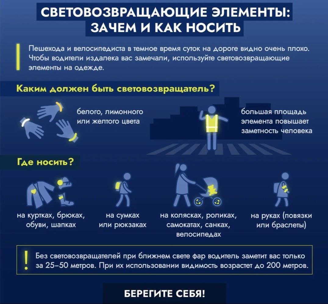 Помните: световозвращатели эффективны при условии соблюдения правил дорожного движения.