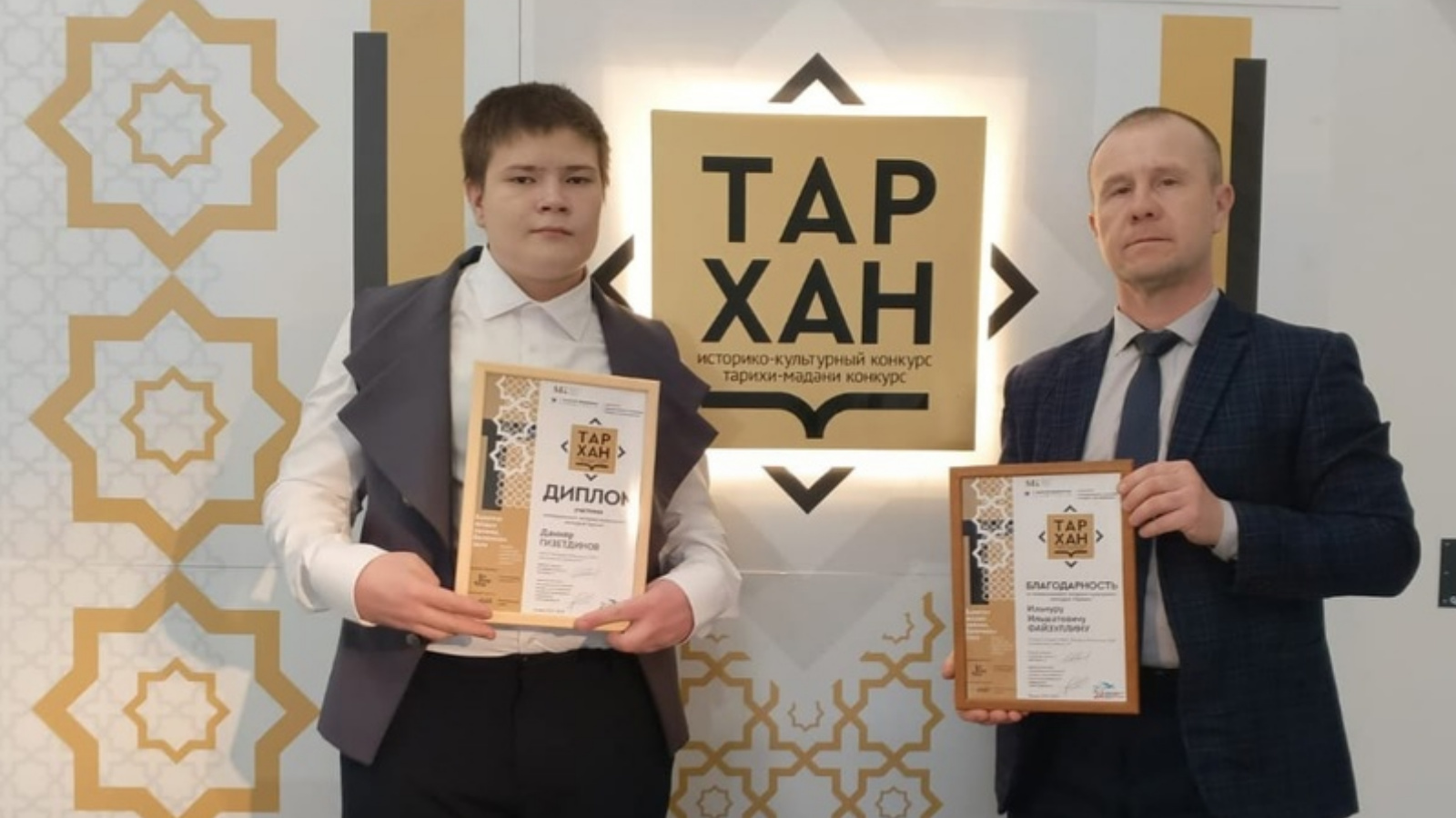 Сегодня ученик Базарно-Матакской СОШ Гизетдинов Динияр вместе со своим учителем Файзуллиным И. И. принял участие в третьем сезоне историко-культурного конкурса «ТАРХАН» 2023–2024. Данный конкурс проводится совместно с Министерством культуры Республики Татарстан, Высшей школой исторических наук и всемирного культурного наследия Института международных отношений Казанского (Приволжского) федерального университета..