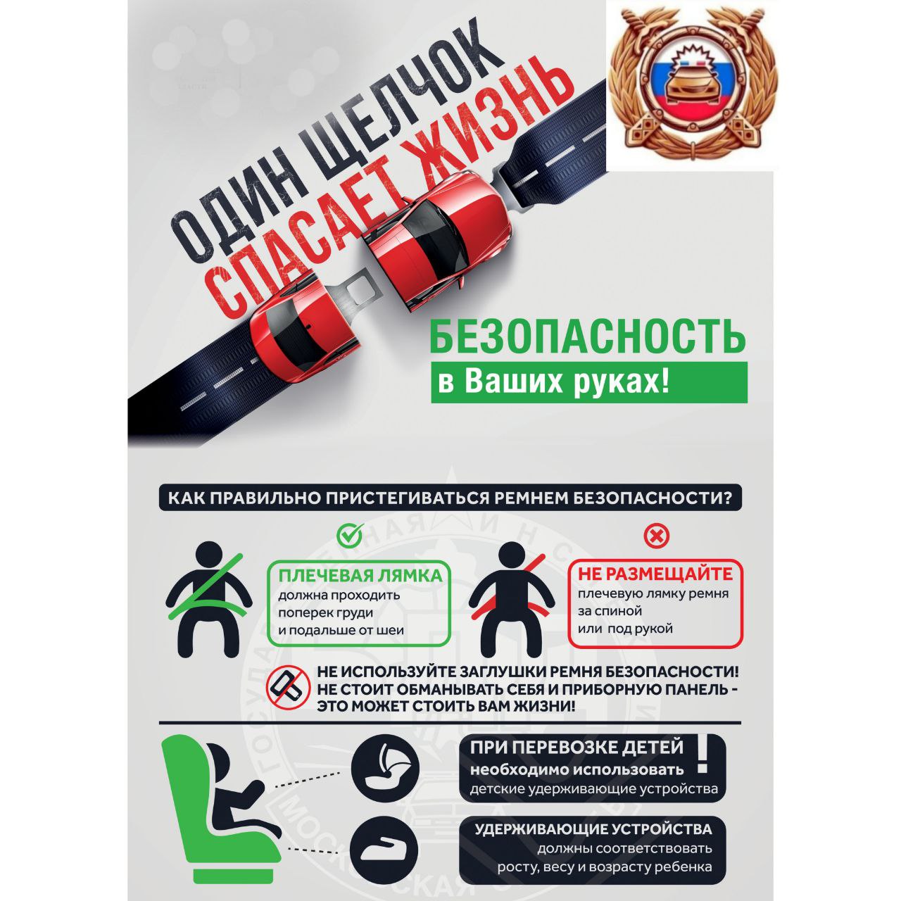 Ремень безопасности – наиболее эффективное устройство транспортного средства, позволяющее уменьшить тяжесть травм водителя и пассажиров при дорожно-транспортных происшествиях. Пренебрежение ремнем безопасности во время движения транспортного средства, в значительной мере, повышает риск получения серьезных травм при столкновении или внезапном торможении транспортного средства.