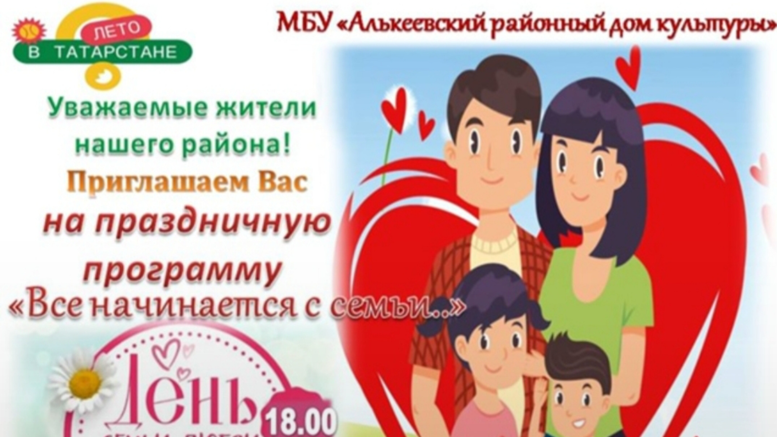 День семьи, любви и верности – это праздник, который пронизан теплом, уютом и искренними чувствами. 8 июля, в 18:00, для всех, кто ценит семейные ценности, в Базарных Матаках, в парке Материнской славы пройдет праздничная программа "Все начинается с любви".