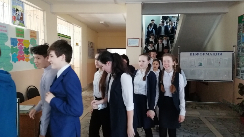 Укучыларда янгын куркынычсызлыгы таләпләрен үтәү күнекмәләрен булдыру максатыннан планлы янгын эвакуациясе узды. Практик өйрәнү эвакуациясе башлануы булып сигнал яңырады, автоматик янгын сигнализациясе эшләде. Мәктәп персоналы тарафыннан бинадан укучыларны эвакуацияләү оештырылды, барлык укучылар һәм педагоглар тревога сигналы буенча мәктәп бинасыннан эвакуация чыгу юллары буенча тиз арада чыктылар. Педагоглар кеше санын барлау үткәрделәр һәм балалар саны турында белешмә бирделәр. Кеше санын барлау барышында бинада беркемнең дә калмавы, барысының да тиешле норматив вакытында эвакуацияләнүе билгеләнде.
