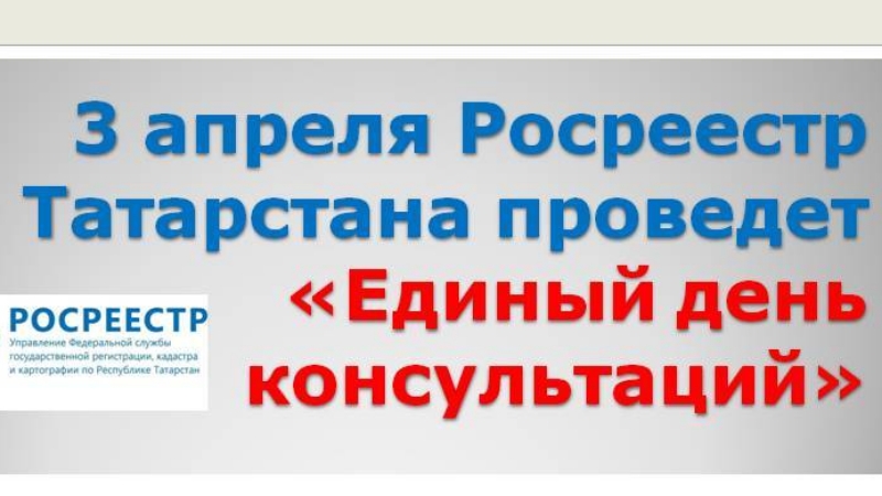 3 апрельдә Татарстан Росреестры Бердәм консультацияләр көне үткәрә. Әлеге чара Росреестрның Татарстан Республикасы буенча идарәсе оешуга 10 ел тулуга багышланган.