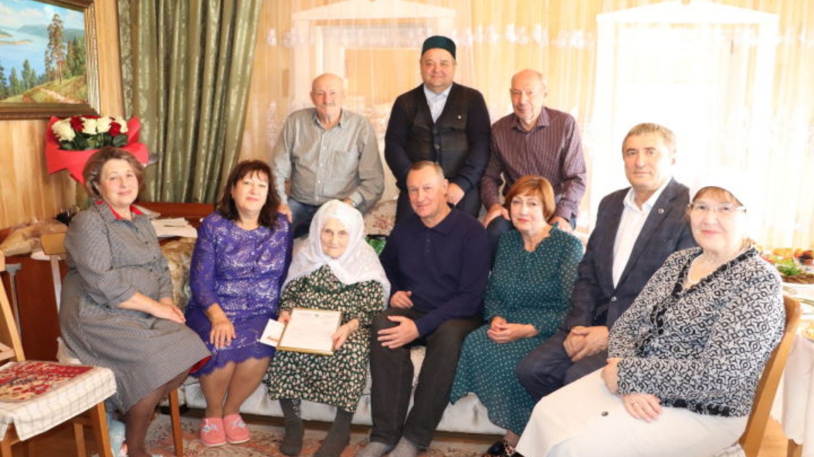 Әниләрен туган көне – 95 яше тулу белән котларга дип аның янына уллары – Татарстан Дәүләт Советы депутаты булган Фоаты, озак еллар җитәкче булып эшләгән Шәүкәте, җаваплы урыннарда хезмәт куйган Әхәте, Рәфкате, Рузалиясе, аларның балалары, оныклары кайткан. Нинди олы бәхет бит бу – әни, дәү әни булып үз йортыңда газизләреңне каршы алу! Минҗиһан әбинең бу бәхете әле озак еллар дәвам итсен иде.