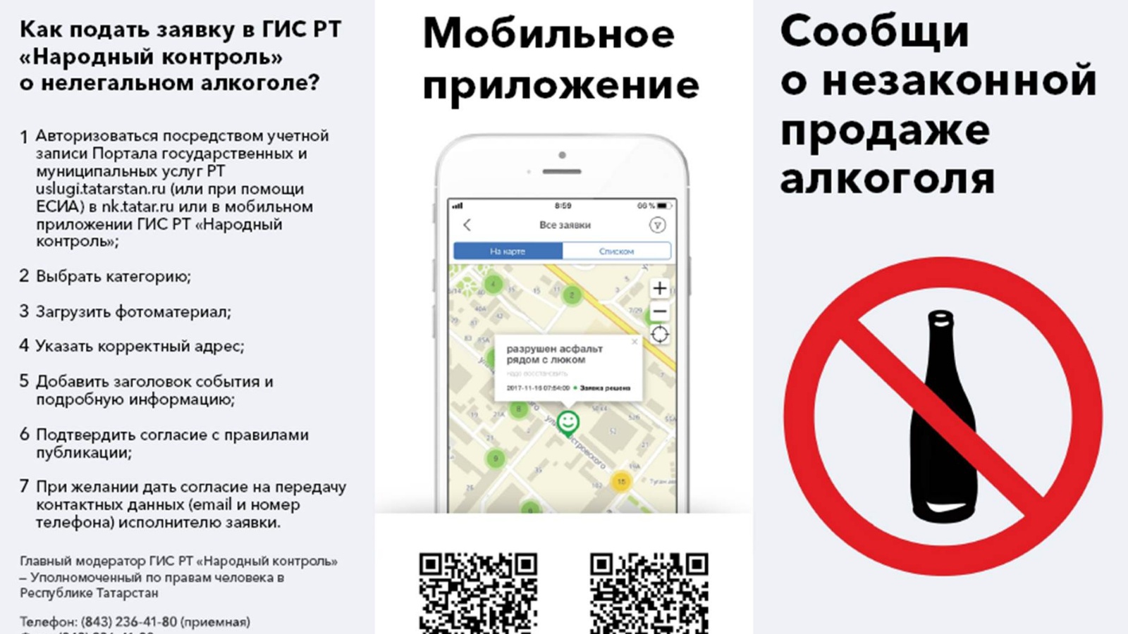 ТР дәүләт хезмәтләре порталыннан файдаланып Татарстан территориясендә этил спирты, алкогольле һәм спиртлы продукция җитештерү һәм аларның әйләнеше өлкәсендәге законнарны бозу турында “Халык контроле”нә хәбәр итүчеләр бүләк алырга мөмкин.