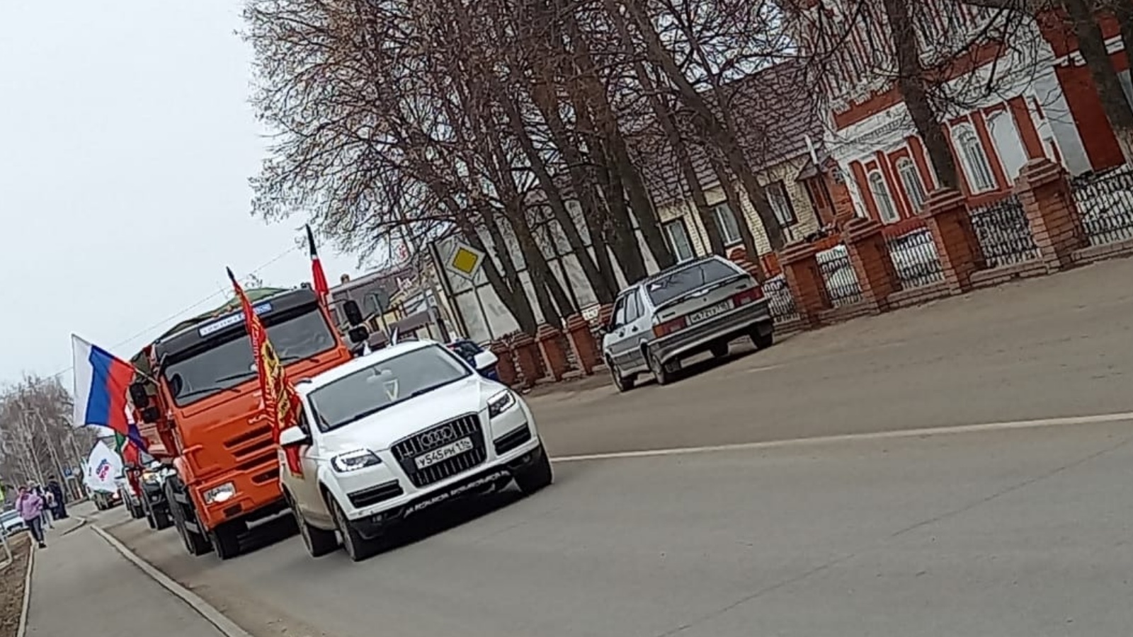 Ярдәм озату автомобиль колоннасына Россия, Татарстан, "Бердәм Россия" партиясе флаглары эленгән иде.