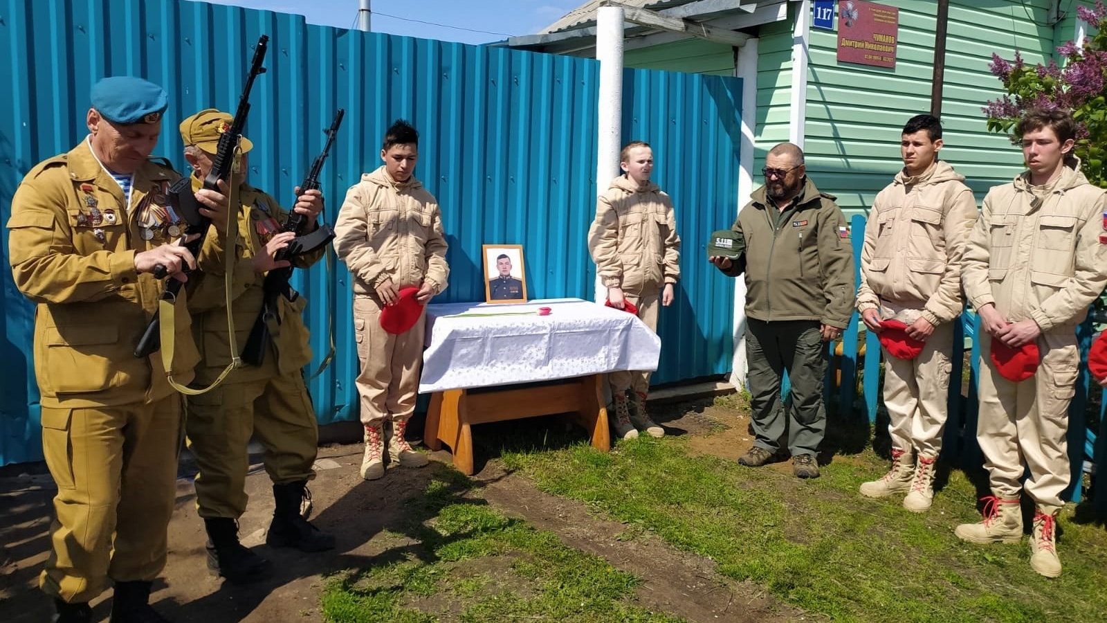 Украинадагы махсус хәрби операция барышында һәлак булган якташларыбыз истәлегенә мемориаль такта ачуга һәм Чечен сугышы ветераны Хәйруллин Роберт Рустамович йортына истәлек тактасы урнаштыруга багышланган митинг.