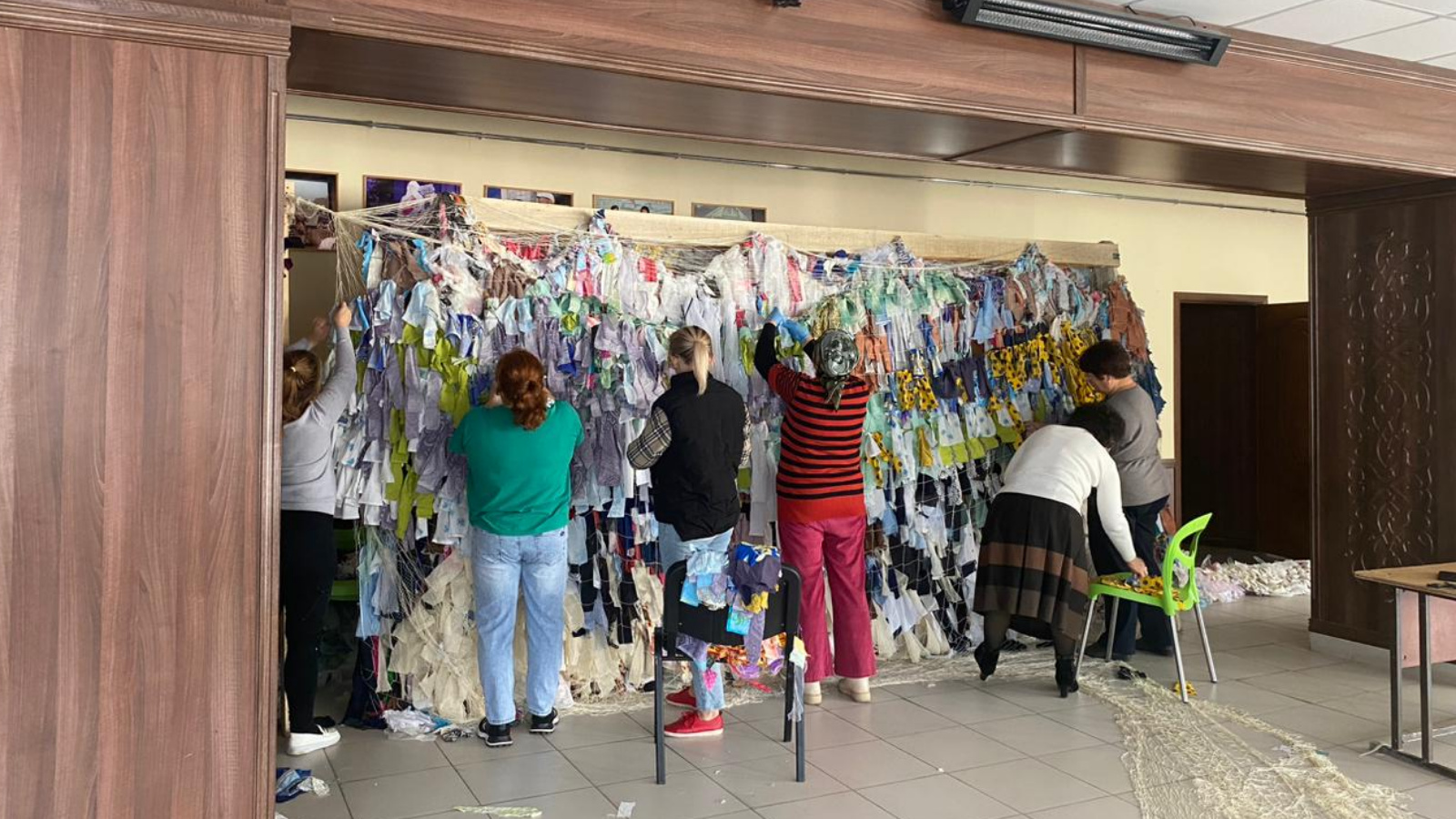 Төрле шәһәр һәм авылларда сугыш хәрәкәтләре вакытында кирәк булган маскировка челтәрләре үрмәли. ӘМР башкарма комитеты хезмәткәрләре дә бу хәрәкәткә кушылды.